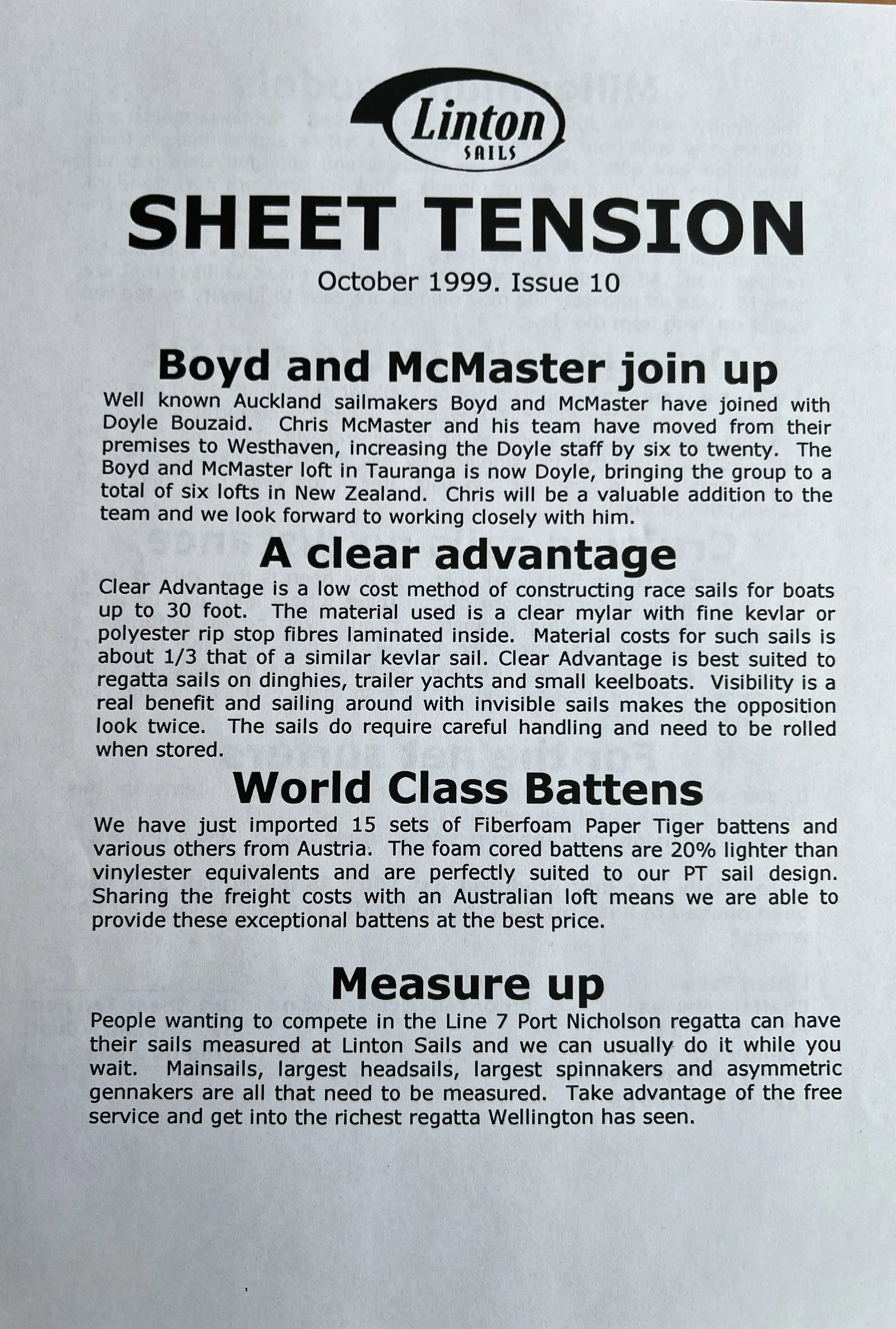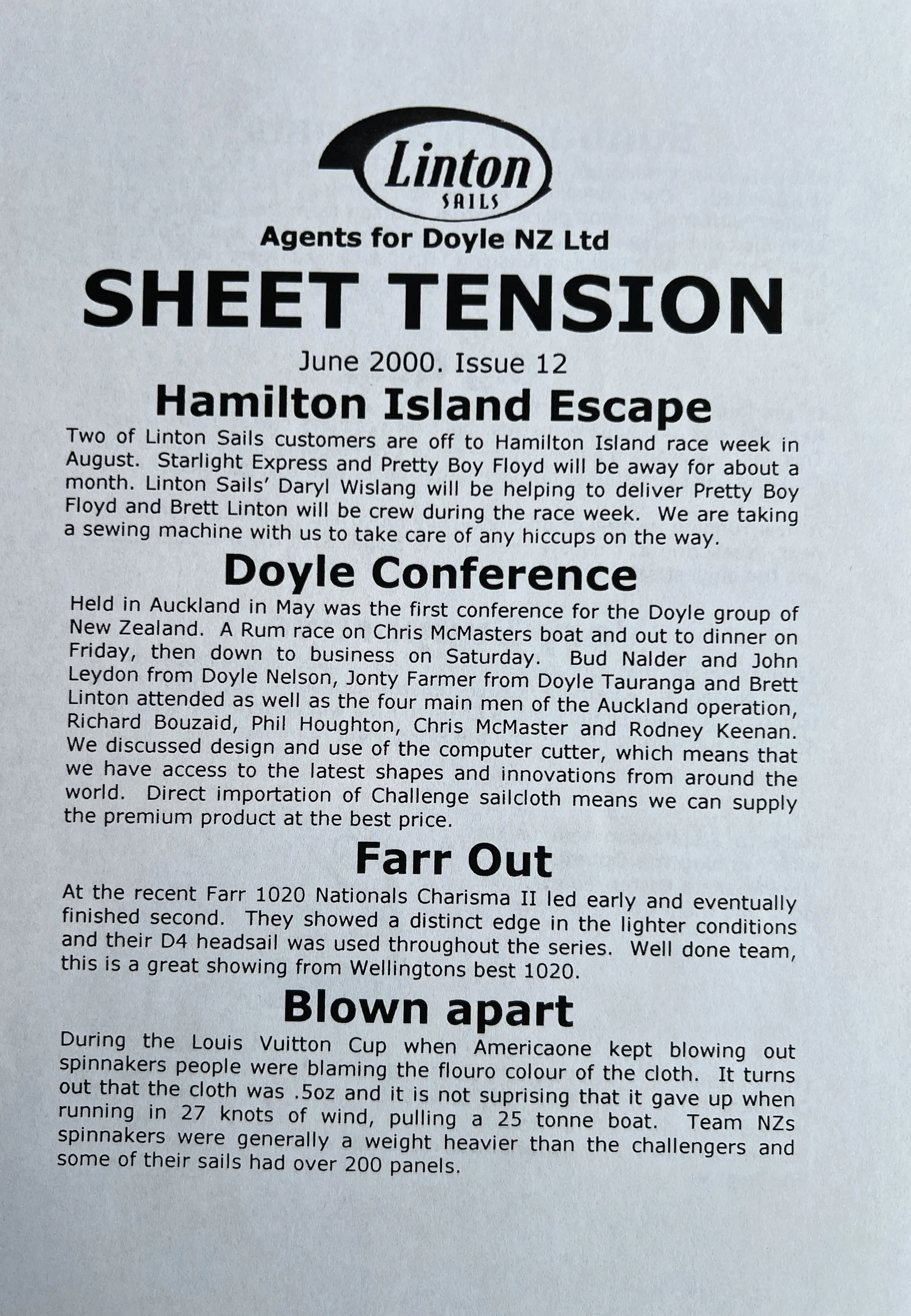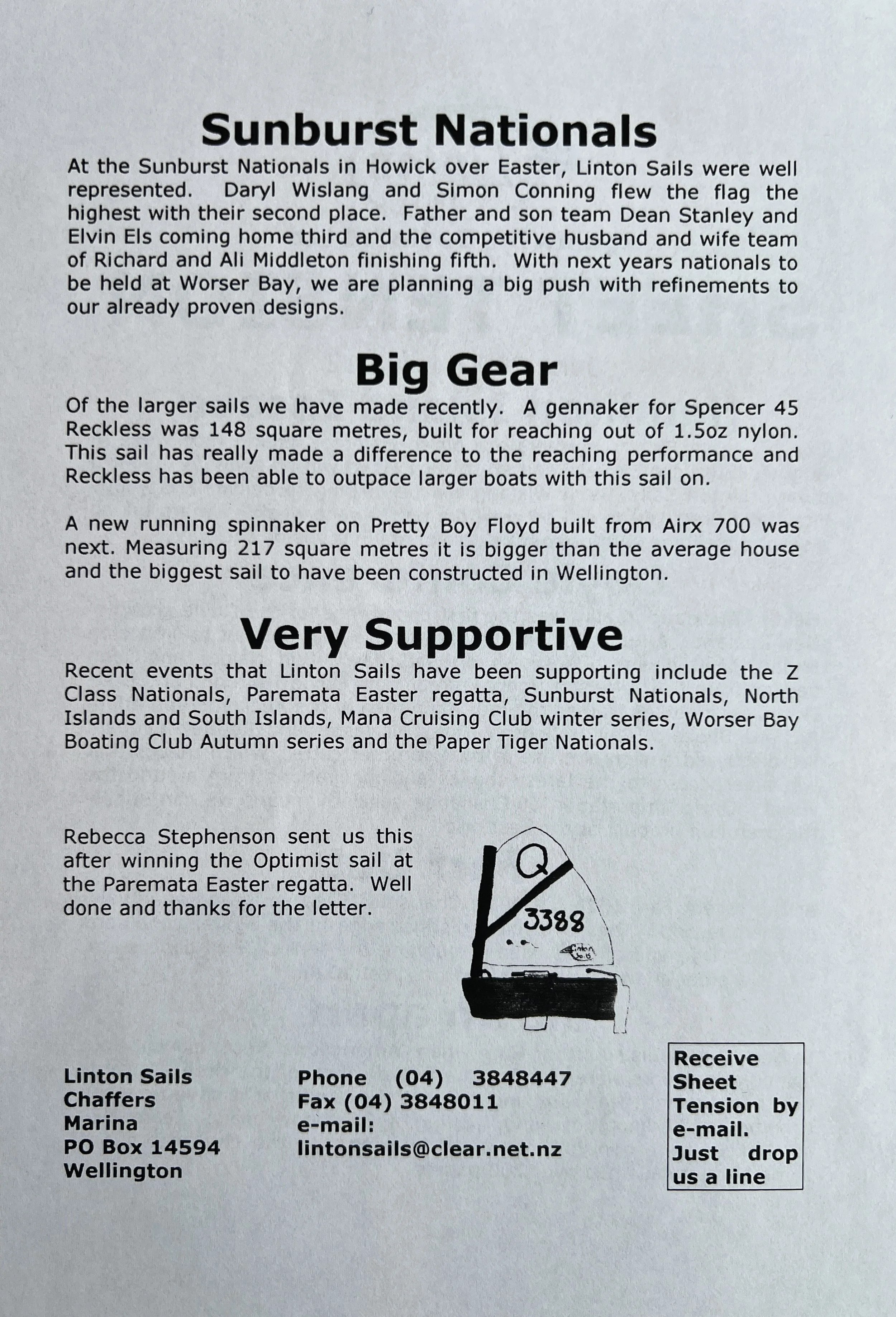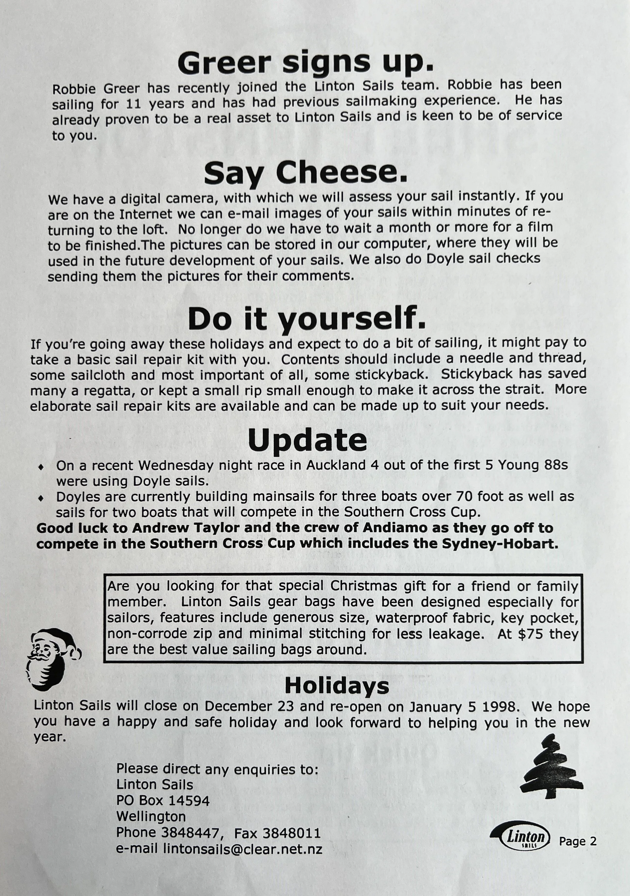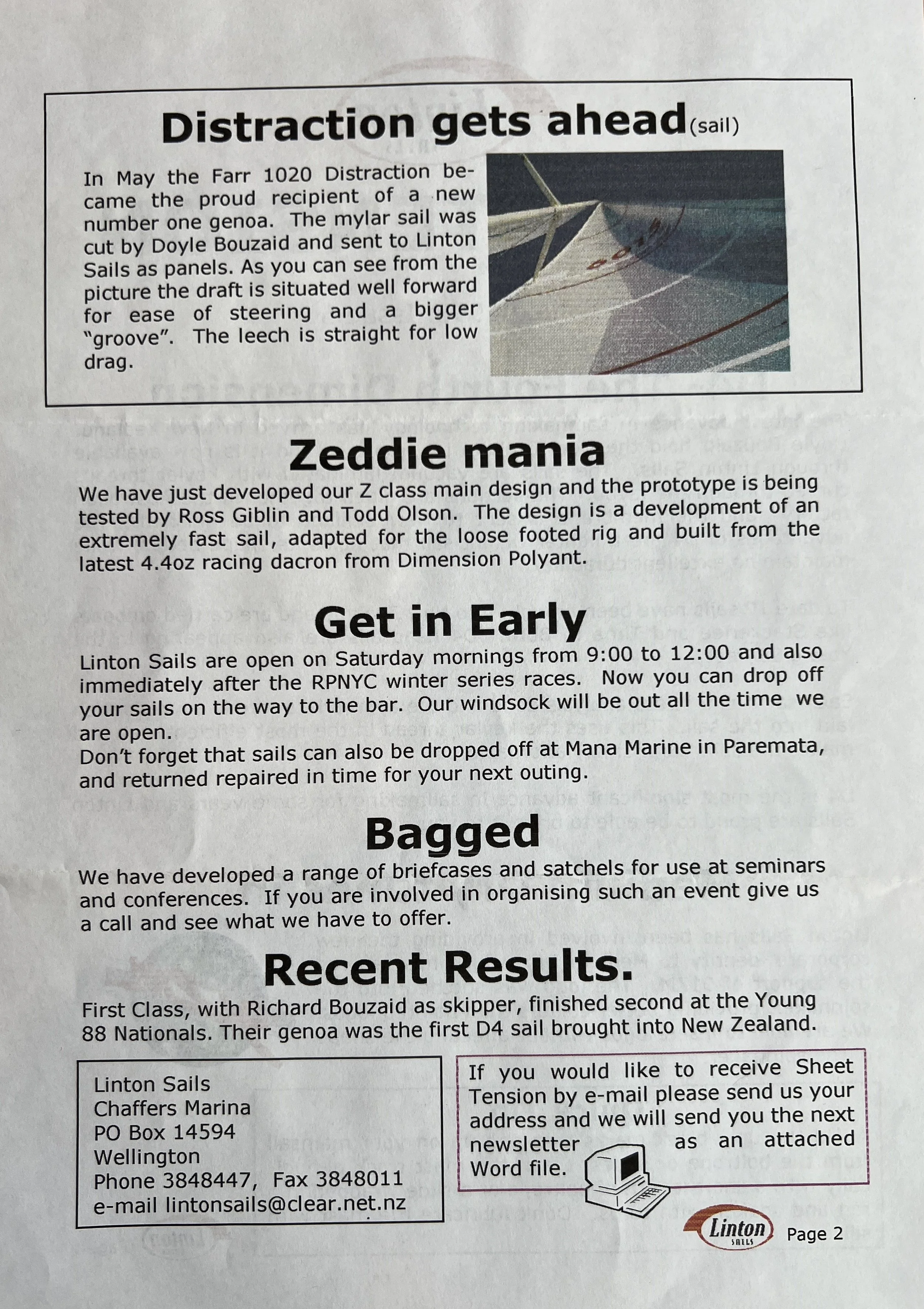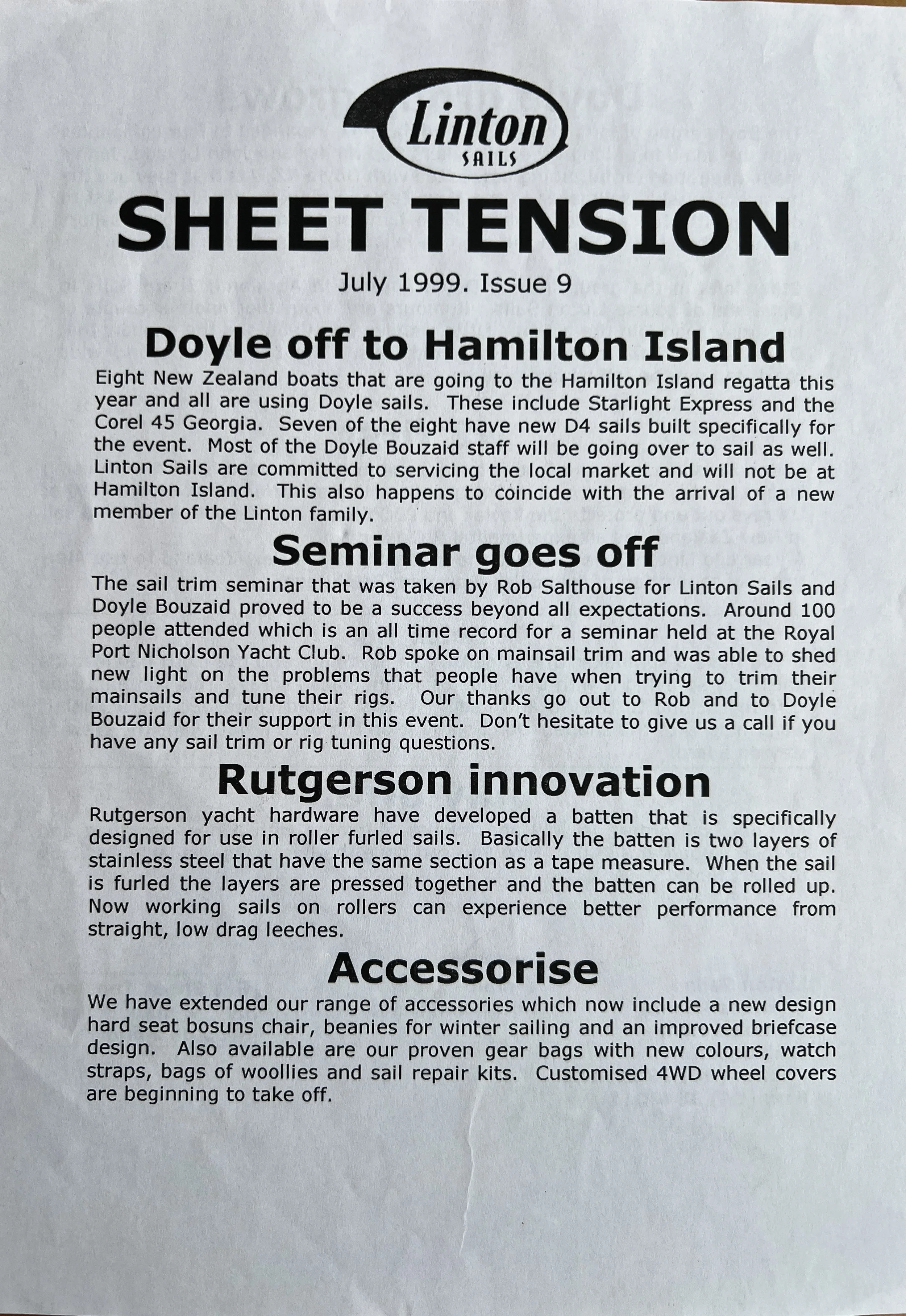 When Linton Sails began in 1997, we would post out a newsletter to local sailors as a way to increase awareness and get business. Recently we discovered old copies and reminisced as we read through them.