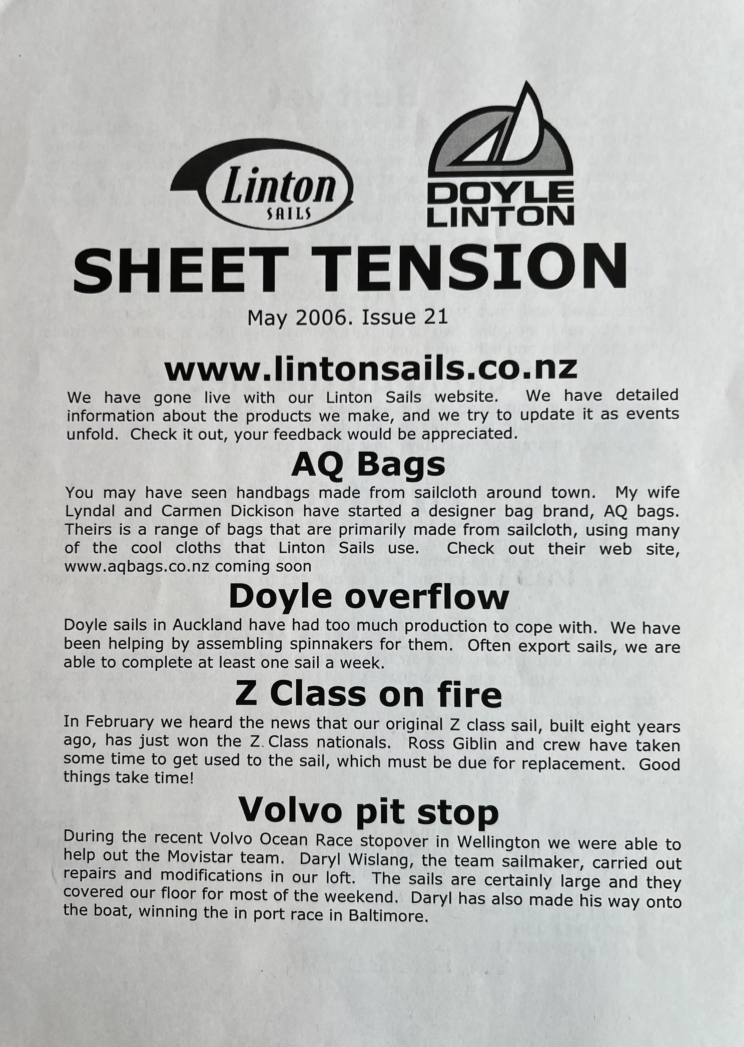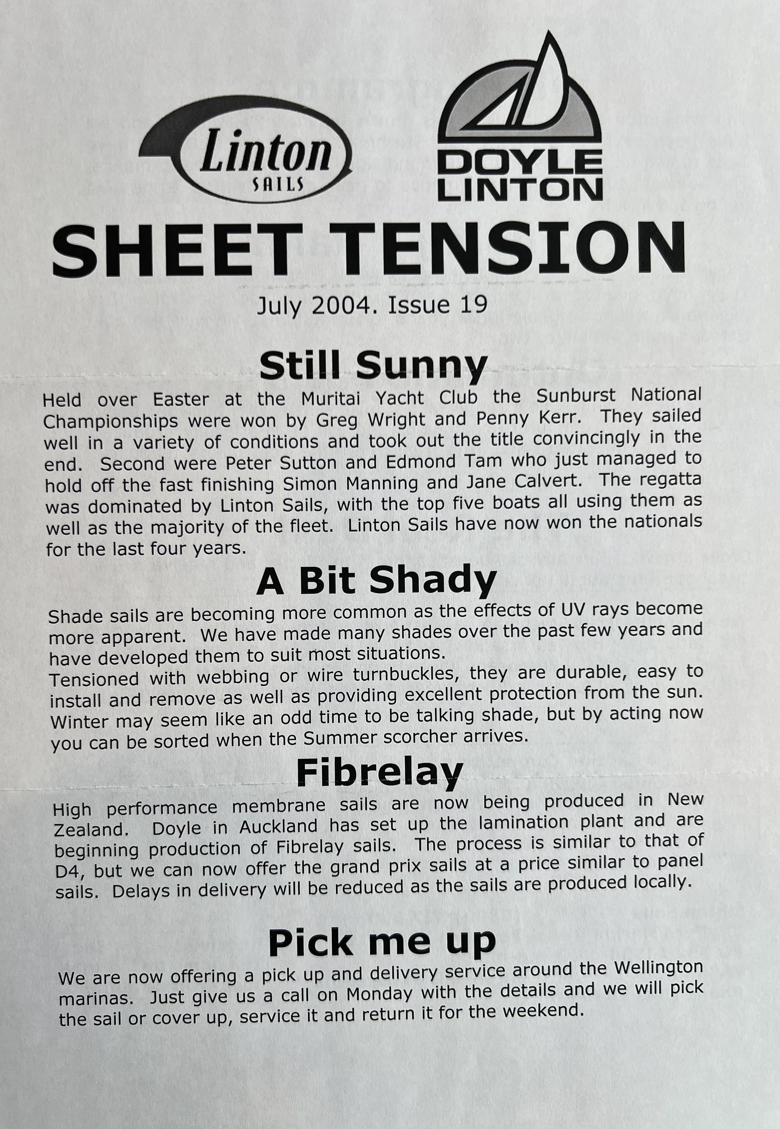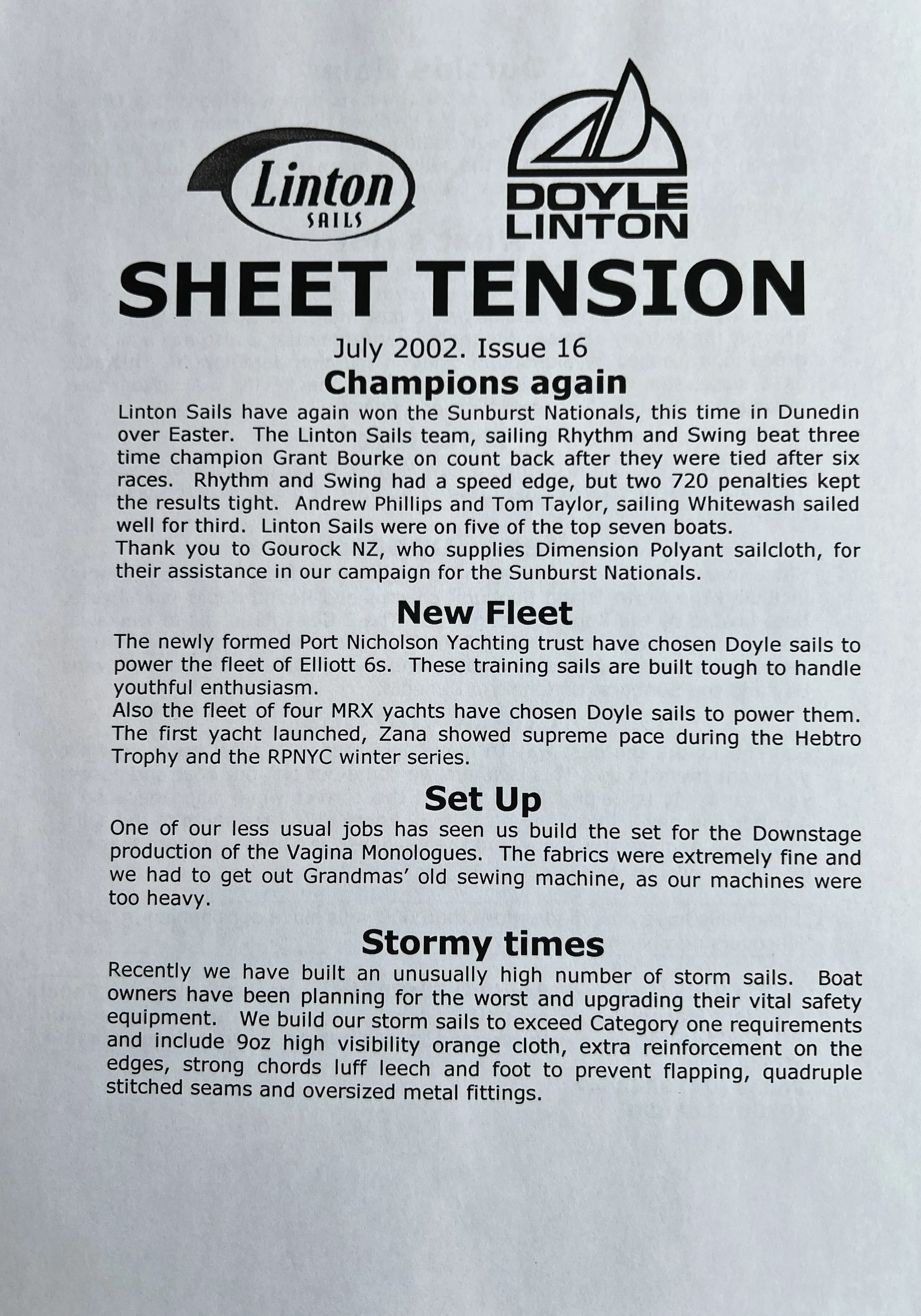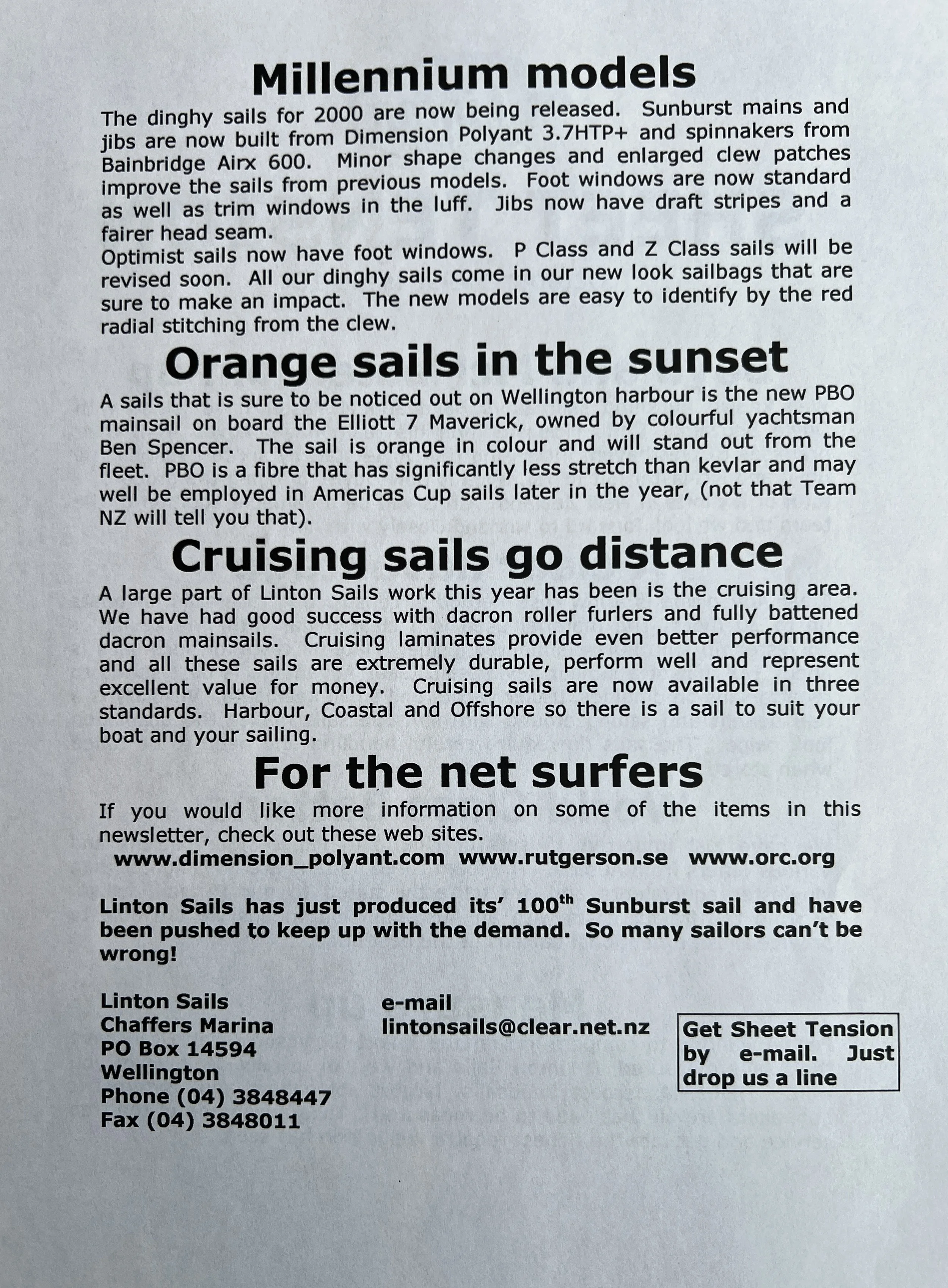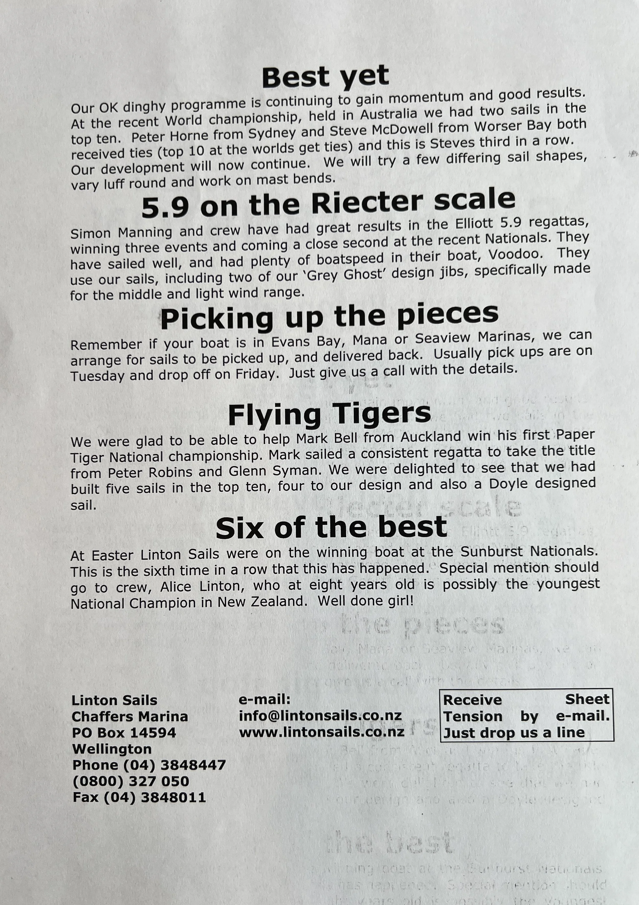 When Linton Sails began in 1997, we would post out a newsletter to local sailors as a way to increase awareness and get business. Recently we discovered old copies and reminisced as we read through them.