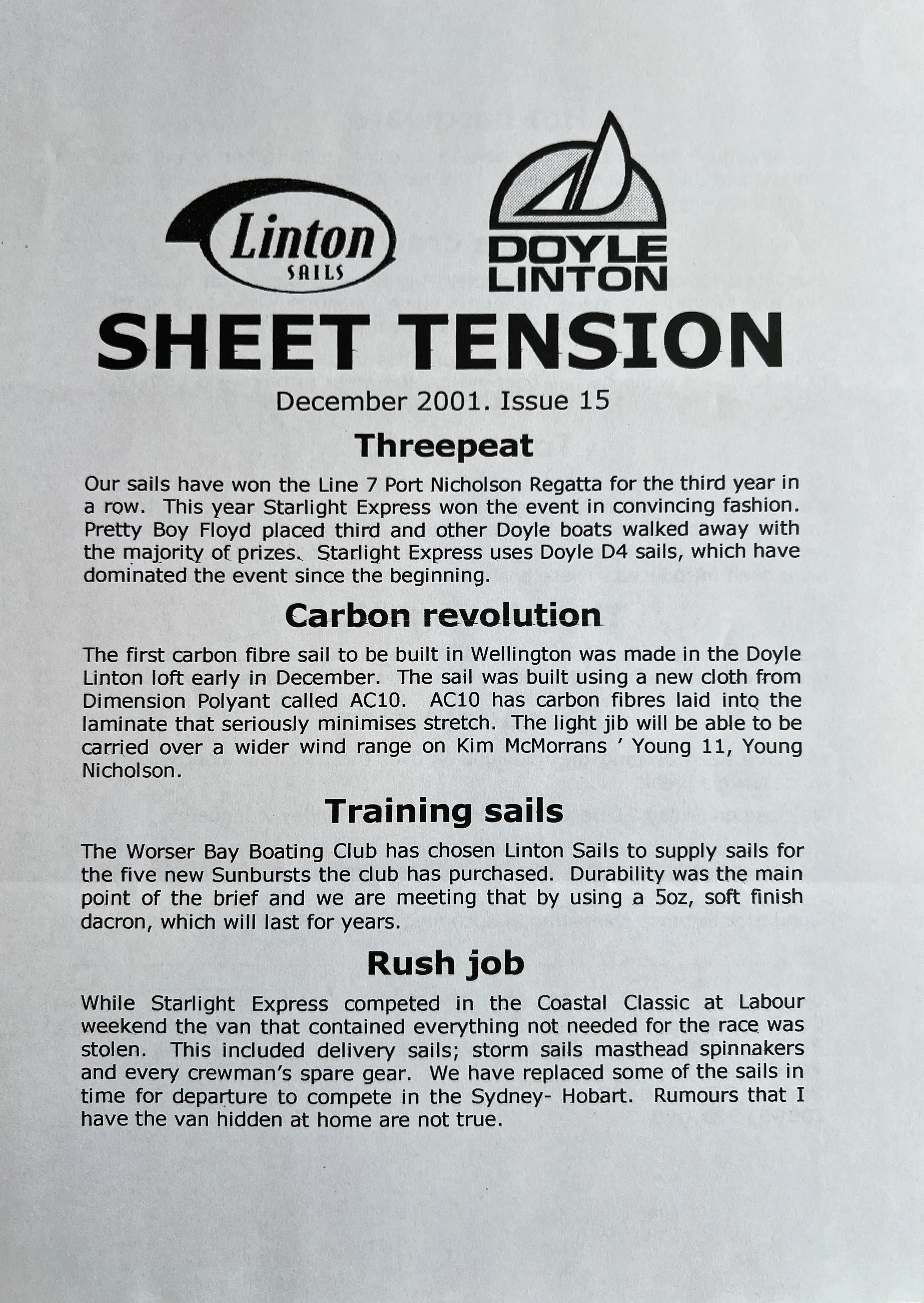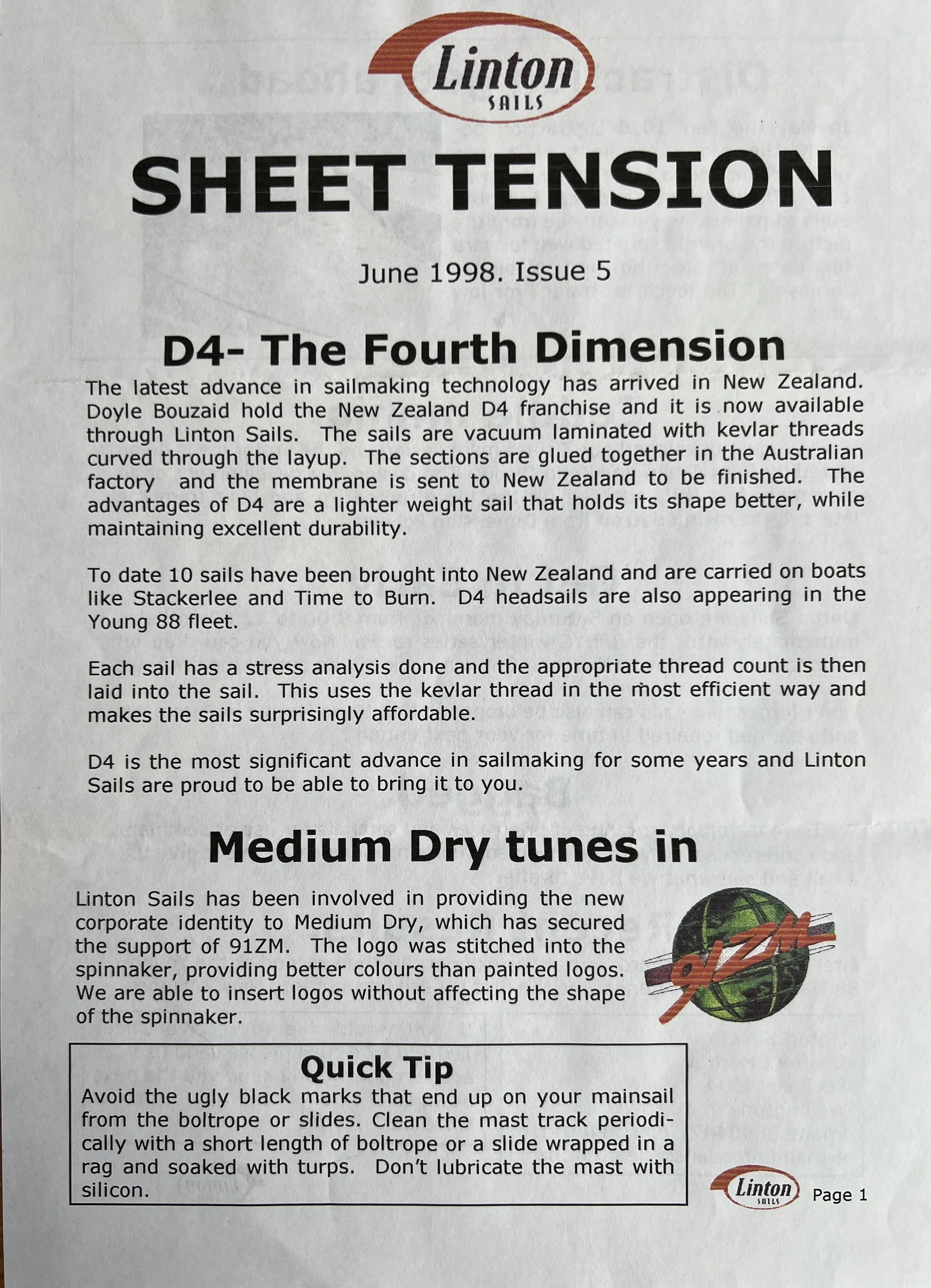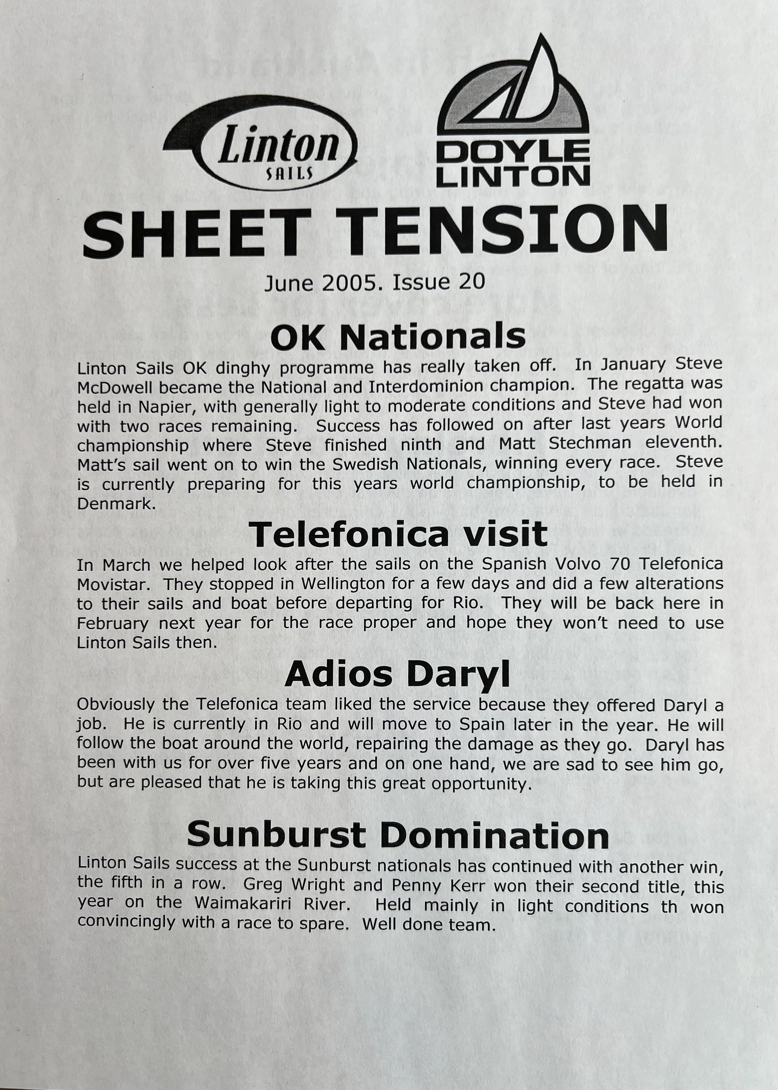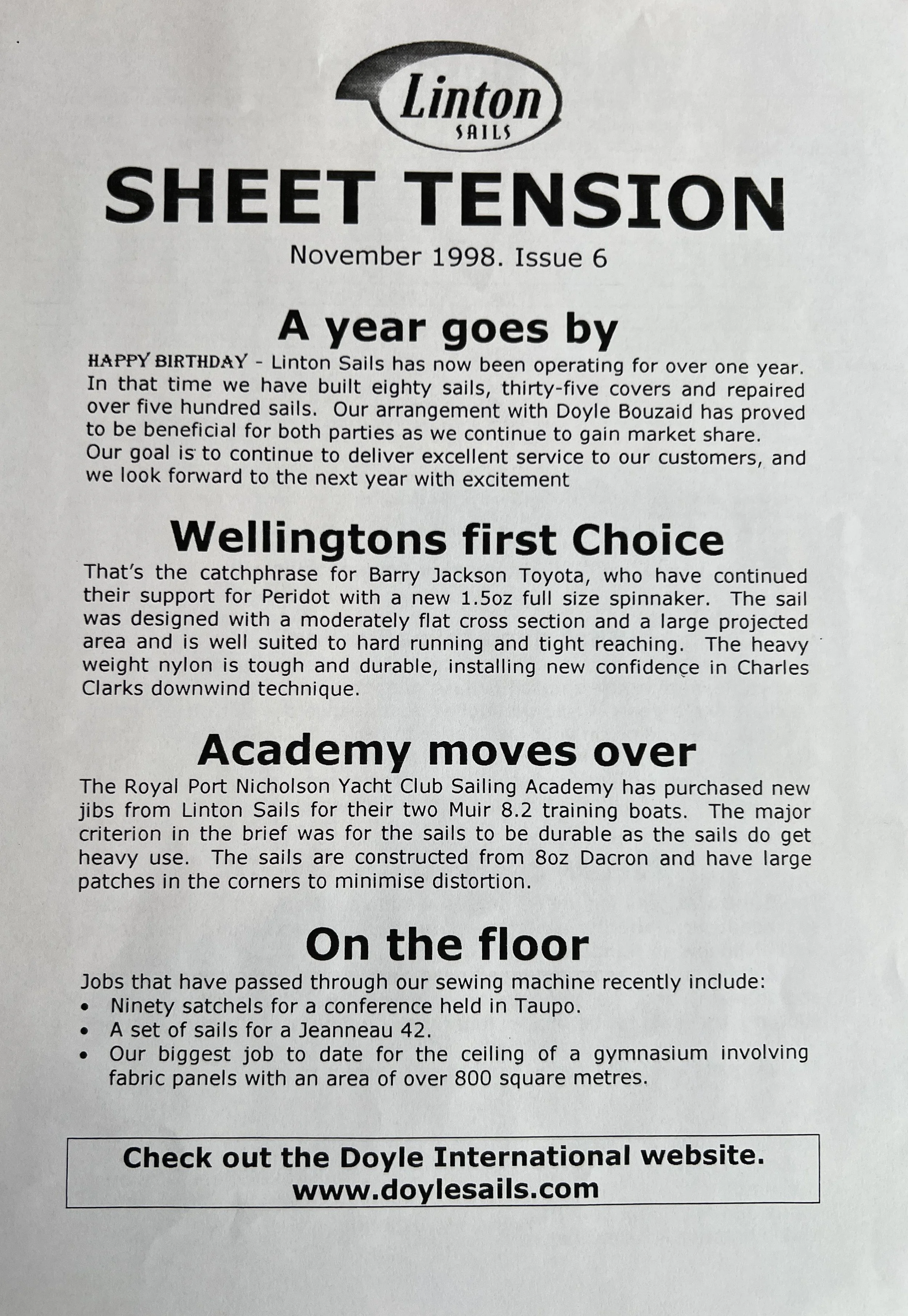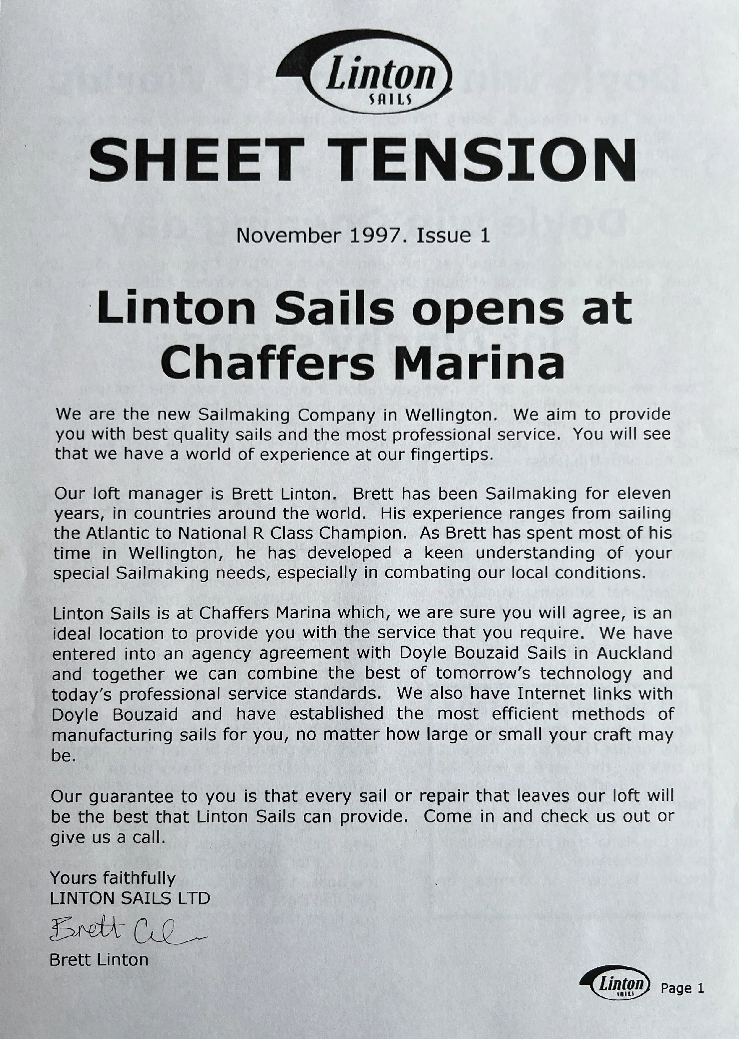 When Linton Sails began in 1997, we would post out a newsletter to local sailors as a way to increase awareness and get business. Recently we discovered old copies and reminisced as we read through them.